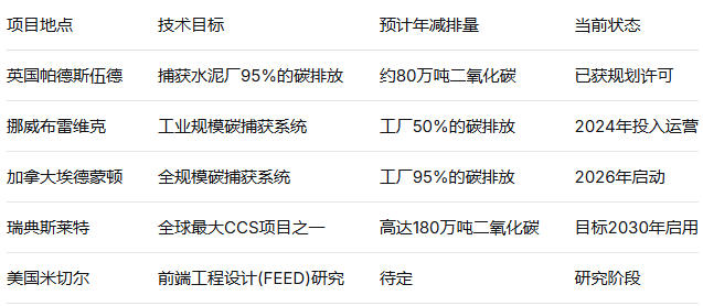 海德堡材料在全球部署的碳捕獲項(xiàng)目對比
